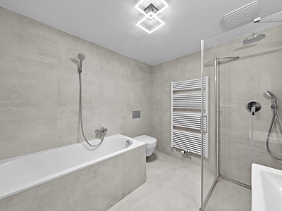 Klimatizace 4x, příprava na screenové a venkovní rolety, koupelna s WC (vana, sprchový kout, umyvadlo, WC, připojení na pračku a sušičku).