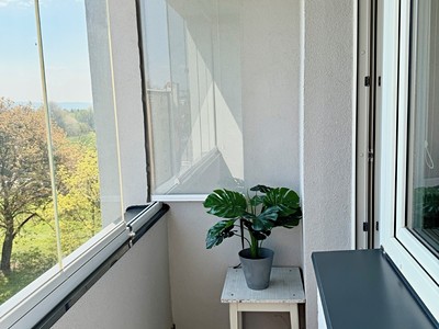 Celková dispozice bytu nabízí prakticky řešený prostor. Vstupní chodba o výměře 8 m² poskytuje dostatek úložného místa díky třem vestavěným skříním. Kuchyně o velikosti 7,6 m² je vybavena udržovanou kuchyňskou linkou, plynovým sporákem a elektrickou troubou. Ložnice má příjemných 13,9 m², obývací pokoj 18,7 m² a navazuje na něj zasklená lodžie, která je osazena posuvnými skly a nabízí příjemné místo k odpočinku v každém ročním období.