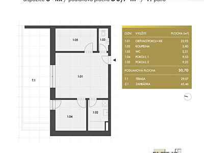 Představujeme Vám jedinečnou příležitost stát se majitelem apartmánu v prestižním projektu Villa Colonnade, který v sobě snoubí moderní architekturu, nadčasovou eleganci a maximální pohodlí. Apartmán o dispozici 3+kk 50,7 m² je situován v 1. nadzemním podlaží a okouzlí Vás rozlehlou terasou 29 m² a předzahrádkou 50 m².