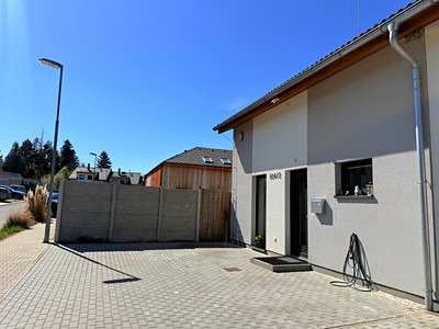 Moderní řadový, plně vybavený dům včetně nábytku a spotřebičů, s klimatizací a prostornou zahradou z roku 2017. Leží mezi dálnicemi D6 a D7, Praha je s jejich využitím vzdálena 5 minut.