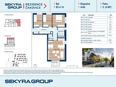 Dovolujeme si Vám nabídnout k prodeji byt 4+kk o výměře 82,7 m² s balkónem 3,8 m² v rezidenčním projektu Rezidence Čakovice, etapa B.