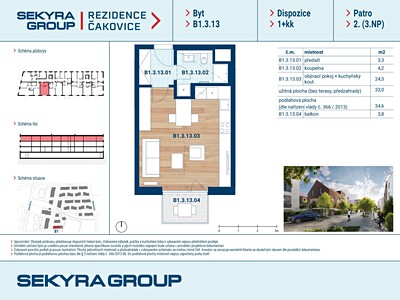 Dovolujeme si Vám nabídnout k prodeji byt 1+kk o výměře 34,6 m² s balkónem 3,8 m² v rezidenčním projektu Rezidence Čakovice, etapa B.