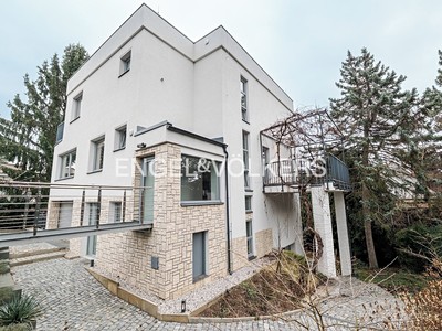 Výrazným prvkem domu je přirozené propojení interiéru se zahradou a několik teras v různých podlažích, které rozšiřují obytný prostor směrem ven. Nejvyšší podlaží navíc nabízí střešní terasu s výhledy na Prahu, které dávají tomuto místu zcela jinou atmosféru. Zahrada poskytuje dostatek soukromí i prostoru pro každodenní život, odpočinek i setkávání.