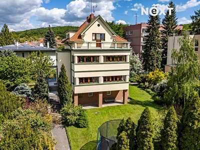 Prodej čtyřpatrového RD 9+3, užitná plocha 300 m2, pozemek 1.330 m2, Praha 4 - Modřany. Krásná vícegenerační vila, kterou lze využít pro vlastní bydlení či jako investiční záměr. Dům je rozdělen na dvě bytové jednotky se samostatným vchodem. V přízemí je k dispozici jednotka 2kk o celkové užitné ploše 39 m2 a se vstupem na zahradu. Druhý byt s dispozicí 7+2 a užitné ploše 256 m2 je umístěný v prvním a druhém patře a podkroví. V prvním patře se interiér skládá z předsíně, obývacího pokoje, samostatné vybavené kuchyně se vstupem na terasu, pokoje, koupelny a toalety. Ve druhém patře je hala, jídelna, kuchyň, dvě ložnice, z nichž jedna má vstup na balkón, koupelny s toaletou a prádelny. Podkroví se skládá z dalších dvou ložnic, koupelny s toaletou a prostorné terasy. V přízemí domu jsou k dispozici čtyři sklepní prostory a garáž. Stavba má novou fasádu, prošla v průběhu let rekonstrukcí včetně opravy střechy, má nové elektrické rozvody, nová jsou také dřevěná eurookna, v přízemí okna plastová. Dům je vytápěn centrálně kombinovaným kondenzačním kotlem Protherm Panther. Na pozemku je umístěna vedlejší stavba, která slouží jako garáž a skladovací prostory. Krásná udržovaní zahrada se vzr