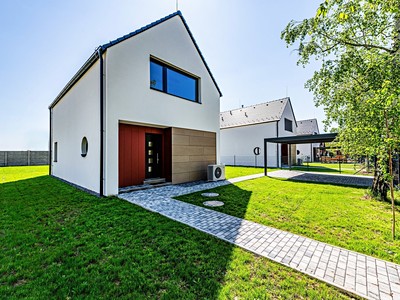 Energeticky úsporný dům (PENB „B“) je vybaven tepelným čerpadlem s podlahovým vytápěním, rekuperací vzduchu, přípravou na krb a přípravou pro solární panely. Dům je o velikosti 5+1 s přístřeškem pro parkování 2 aut.