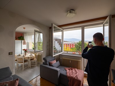 Byt 3+kk s balkonem a otevřeným výhledem na Radhošť, který kombinuje klidné bydlení s výbornou dostupností služeb.
