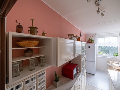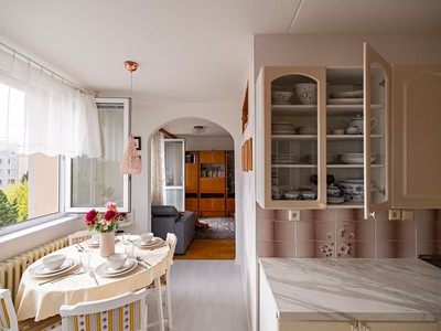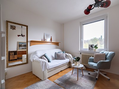 Dispozice je praktická a dobře využitelná – obývací pokoj s kuchyní a dva samostatné pokoje, které poskytují dostatek soukromí pro rodinu, pár i jednotlivce, kteří potřebují například pracovní nebo dětský pokoj.