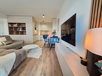 Tento moderní byt o výměře 68 m2 s terasou o výměře 17 m2, kde si vychutnáte ranní kávu i večerní sklenku vína při západu slunce, Vám poskytne veškerý komfort a pohodlí, které potřebujete. Obývací pokoj s kuchyní má nadstandardní výměru 39 m2, která umožňuje v případě potřeby jednoduchou úpravou navrženou architektem získat pokoj navíc, tedy předělit na dispozici 3+kk.
