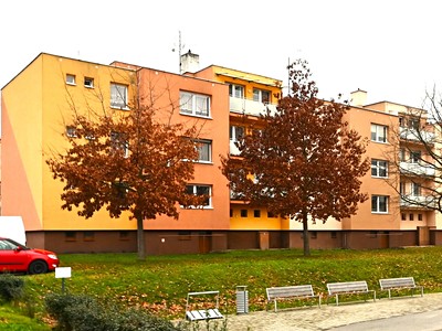 Dispozice: Vstupní hala, kuchyň, jídelna, koupelna s vanou, WC samostatné, obývací pokoj, dětský pokoj, ložnice, prostorná lodžie, prostorný sklep, společná kolárna a kočárkárna.