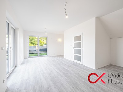 Ve spodní části bytu vás přivítá zádveří, které vás zavede do prostorného obývacího pokoje s místem pro kuchyňskou linku a přímým vstupem na vaši vlastní zahrádku, kde si můžete užívat slunečné dny a grilování s rodinou.