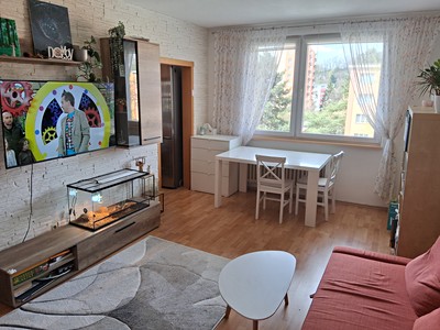 Velkým benefitem je modernizované, atypicky řešené jádro, nové podlahy a celkově velmi dobrý stav bytu – bez nutnosti větších investic.