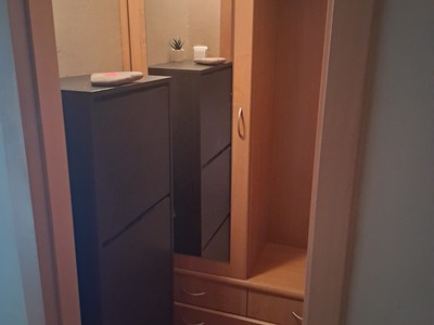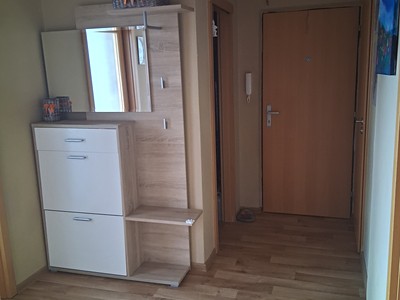 Dispozice bytu je velmi praktická – pokoje jsou přístupné z prostorné chodby, kde se nachází i šatna.